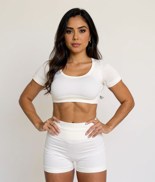 CONJUNTO SHORT KAY+ TOP SEAMLESS BLANCO